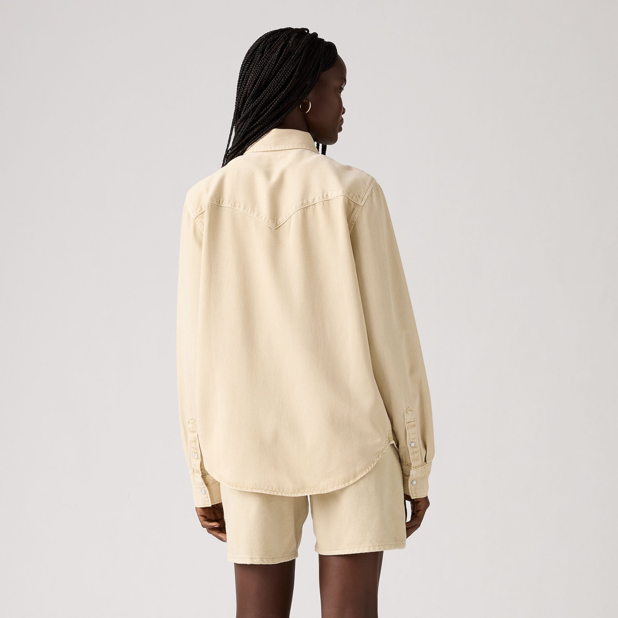 - A long-sleeve denim western shirt