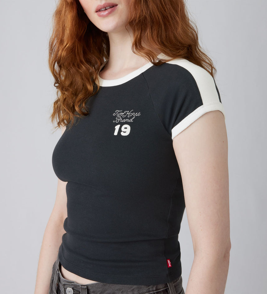 There's nothing basic about our Graphic Riley Raglan Tee. Cut with a slim fit, we designed it with easy short sleeves, a ringer design and topped it off with a one-of-a-kind Levi's® logo.