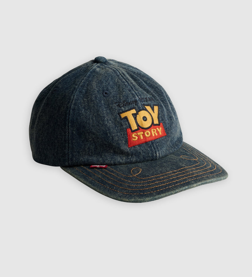 This limited-edition Logo Hat comes in denim and features a Toy Story graphic design with an embossed Pixar ball clasp and custom western stitch details on the brim.