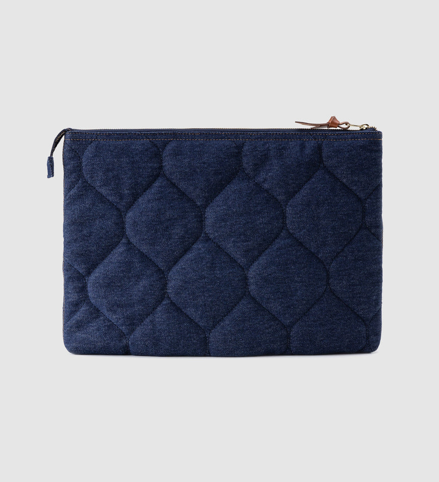 This rinsed Denim Laptop Sleeve was designed to fit up to a 15" laptop and was crafted with classic denim. Plus, it features elevated details like a leather patch and leather puller.