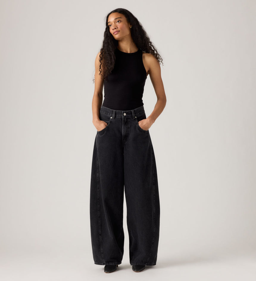 Bold shape. Big comfort. Undeniably Levi's®. Our Super Baggy Barrel jeans are as comfortable as they are effortless, thanks to their easy mid rise, curved leg cut and an extra-oversized fit. Even better? We gave them archival back pockets, scooped front pockets and a coated finish.